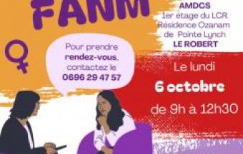 L'association "Culture et Egalité" vous informe de sa permanence "KAY FANM" le lundi 6 octobre 2025 de 9h à 12h30 à l'Antenne Municipale de Développement et de Cohésion Sociale (1er étage du LCR - Résidence Ozanam de Pointe Lynch) au Robert.