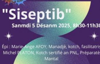L'association Lanbéli vous invite à son "Bokantaj Dévlopman personel : Siseptib" samedi 6 décembre 2025 de 8h30 à 11h30 animé par Marie-Ange AFOY (Manageuse, Coach, Facilitatrice) et Michel PLATON (Coach certifié en PNL, Préparateur mental) au local associatif de Monnerot.