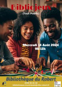 La bibliothèque municipal du Robert vous propose le mercredi 14 août 2024 une séance de Bibliojeux de 9h à 12h à la bibliothèque.