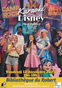 La bibliothèque municipale du Robert vous propose le vendredi 12 décembre 2025 de 15h à 18h  "KARAOKE DISNEY" (tout public)