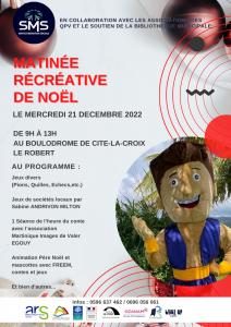 Matinée récréative de Noël organisée par l’association SMS de 9h à 13h au Boulodrome de Cité La Croix avec la participation de la Bibliothèque du Robert et des conteurs de l' Association AMI