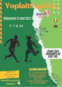 L'AC Vert-Pré organise dimanche 22 mai 2022 son tournoi Yoplait Cup U15 au Stade Léon DUCHAMPS au Vert-Pré à partir de 7h30.