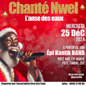 Chanté nwel organisé par l'association l'Anse des Eaux avec le groupe KANTIK BAND à l'Anse des Eaux quartier Mansarde à partir de 16h.