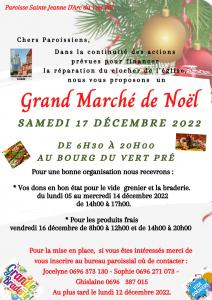 Grand marché de Noël organisé par la paroisse Sainte Jeanne D'Arc du Vert-Pré le samedi 17 décembre 2022 de 6h30 à 20h au bourg du Vert-Pré.